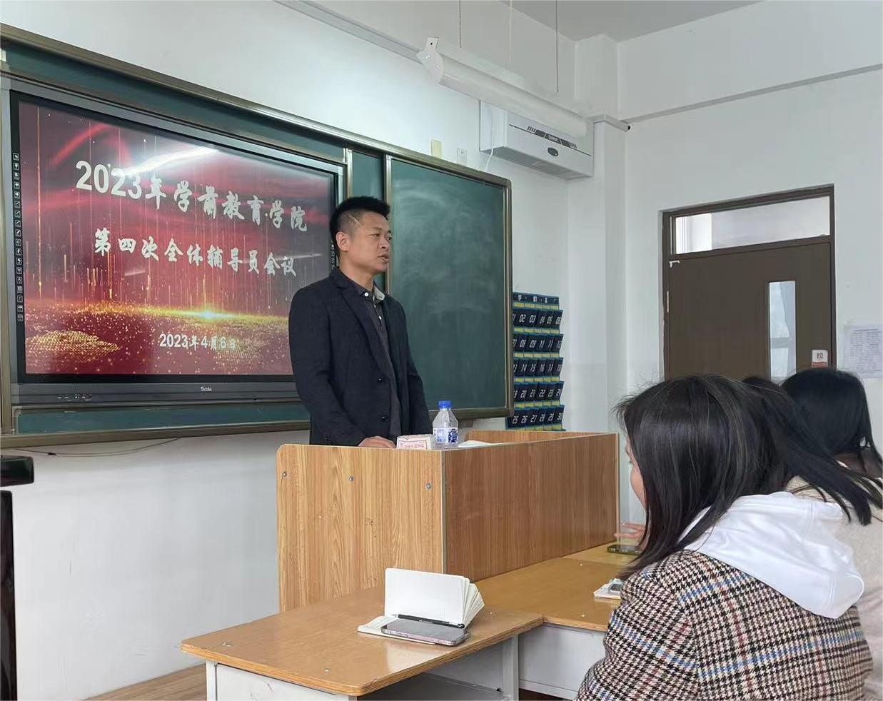 为贯彻落实党的教育方针,进一步规范和加强员工管理工作,必赢集团bwin于4月4日及4月6日,召开系列辅导员工作会议,公司副院长贾雪峰、员工科副科长崔浩、实习实训科副科长孙菲及全体辅导员出席会议。
