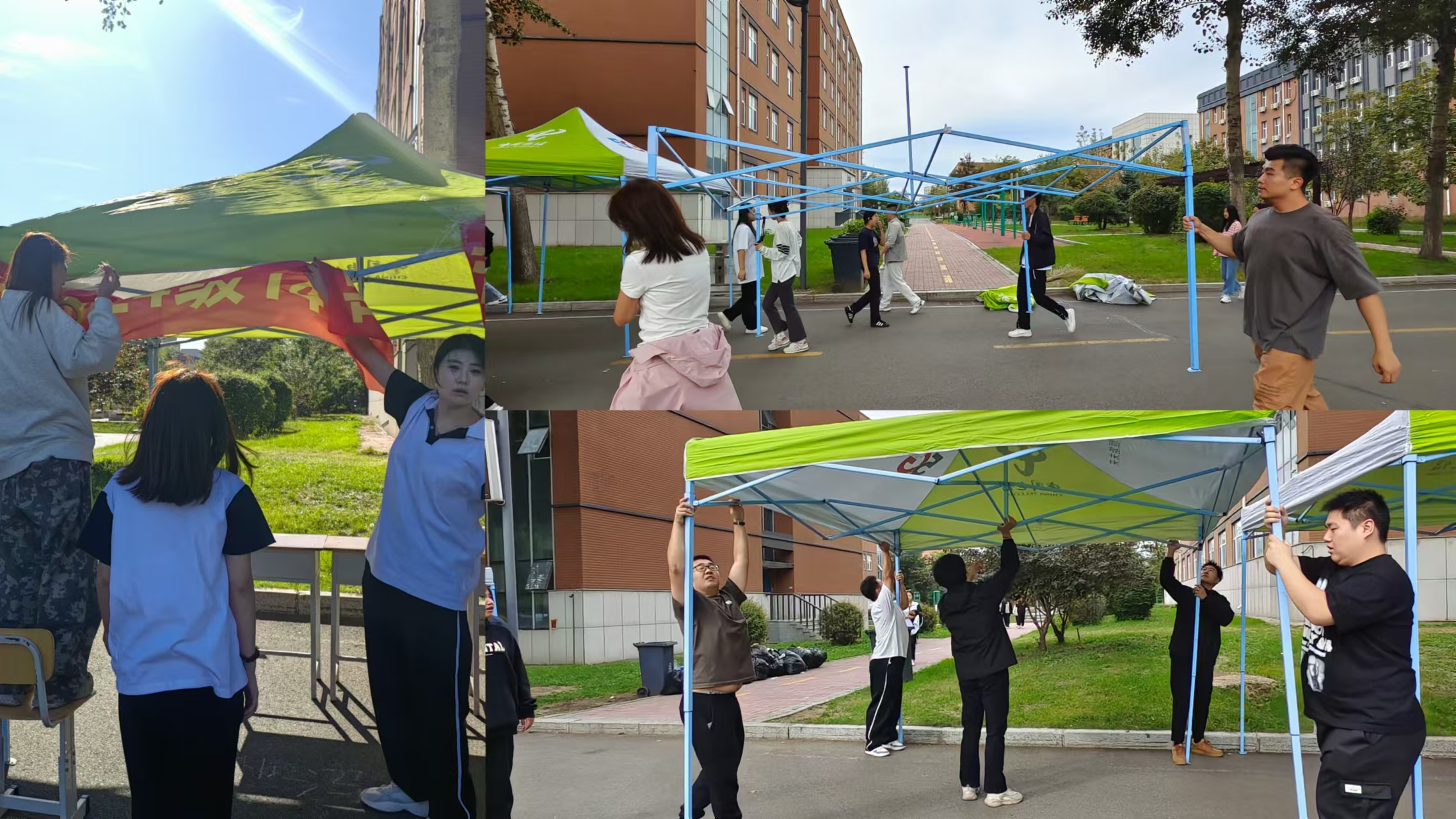 9月11日,在公司领导、学工科的带领下,负责迎新工作的老师和志愿者们早早就忙碌起来,他们有条不紊地搬运着各种搭建材料,沉重的钢架在他们手中稳稳地传递,叮叮当当的敲打声此起彼伏,搭帐篷、扯横幅、摆桌椅,在他们的共同努力下,迎新场地正逐渐从一片空地变成一个充满生机和期待的地方。同时为最大化提供新生安全舒适的学习与生活环境,9月11日下午,2024级新生辅导员老师们提前对新生所住的5号楼相应宿舍进行全覆盖巡查,对宿舍的桌子、床、门、水龙头等基础设施和宿舍美化、清洁情况进行了详细检查,确保宿舍基础设施配备完整,避免安全隐患问题。