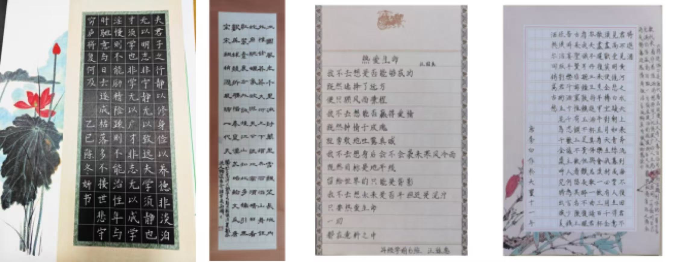 书法赛道硬笔与软笔双轨并进,既见《兰亭序》临摹的形神兼备,亦有原创诗词的笔走龙蛇。软笔组选手以丈二宣纸挥就《少年中国说》节选,笔力遒劲如松柏傲立;硬笔组作品《千字文》长卷字字端庄,引得观众驻足品鉴。特设“童趣书法”环节,选手需将《三字经》片段转化为儿童易于接受的书法作品,实现传统艺术与幼儿教育的创新融合。