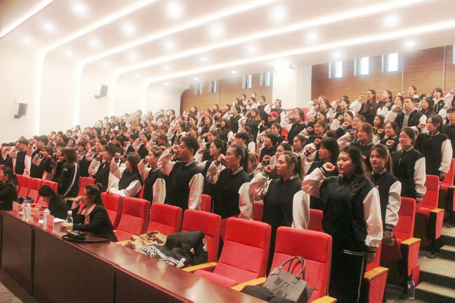 孙嘉彤代表2023级学员班发言,她表示“桃李青马工程”培训让全体学员受益匪浅,加深了同学们对党章党史和党的创新理论的理解,在今后的工作、学习中同学们将学以致用,积极奉献,努力成长为新时代有为青年,让青春在奉献中闪光。路瑶代表2024级学员做表态发言:将坚定理想信念,认真学习党的创新理论;坚持知行合一,深入实践锤炼本领;勇担骨干责任,竭诚服务同学。随后,全体“桃李青马工程”学员进行集体宣誓。